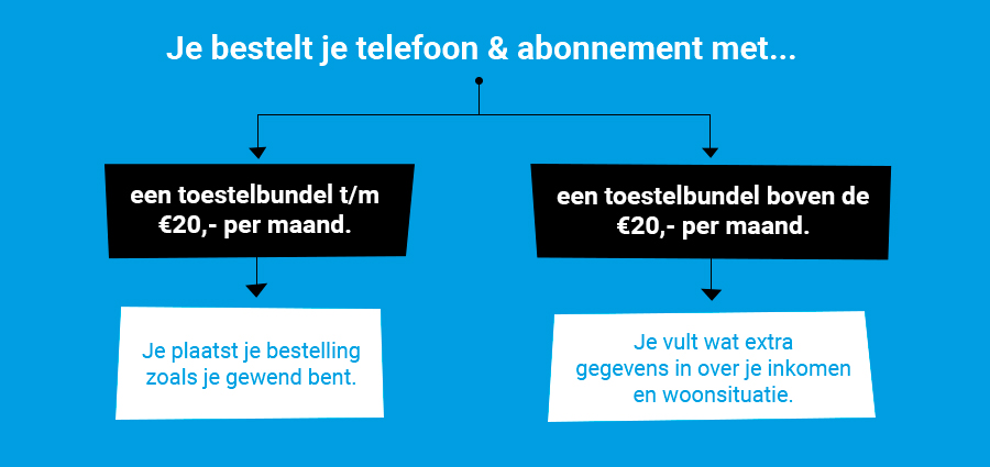 Deze regels zijn op 1 mei ingevoerd door de overheid. Het Nibud, een onafhankelijke financiële organisatie, heeft hiervoor de kredietnorm vastgelegd. Met deze norm wordt bepaald of je voldoende financiële ruimte hebt voor het afsluiten van een toestelbundel. Deze norm is gebaseerd op bijvoorbeeld je inkomsten, gezinssamenstelling en woonlasten, waardoor er altijd een voor jou passend advies uitkomt.