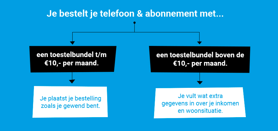 Wanneer je nu een abonnement met toestelbundel afsluit, kan het daarom zijn dat om extra informatie wordt gevraagd. Met deze informatie checkt je provider bij het BKR of zij je toestelbundel, ook wel een toestelkrediet genoemd, mogen goedkeuren. Zo wordt ervoor gezorgd dat je alleen een abonnement afsluit dat écht bij jou past. Voor zo'n toestelkrediet geldt gelukkig 0% rente. Zo betaal je dus niets extra. Deze nieuwe regels gelden waar je ook koopt en voor welke provider je ook kiest.
